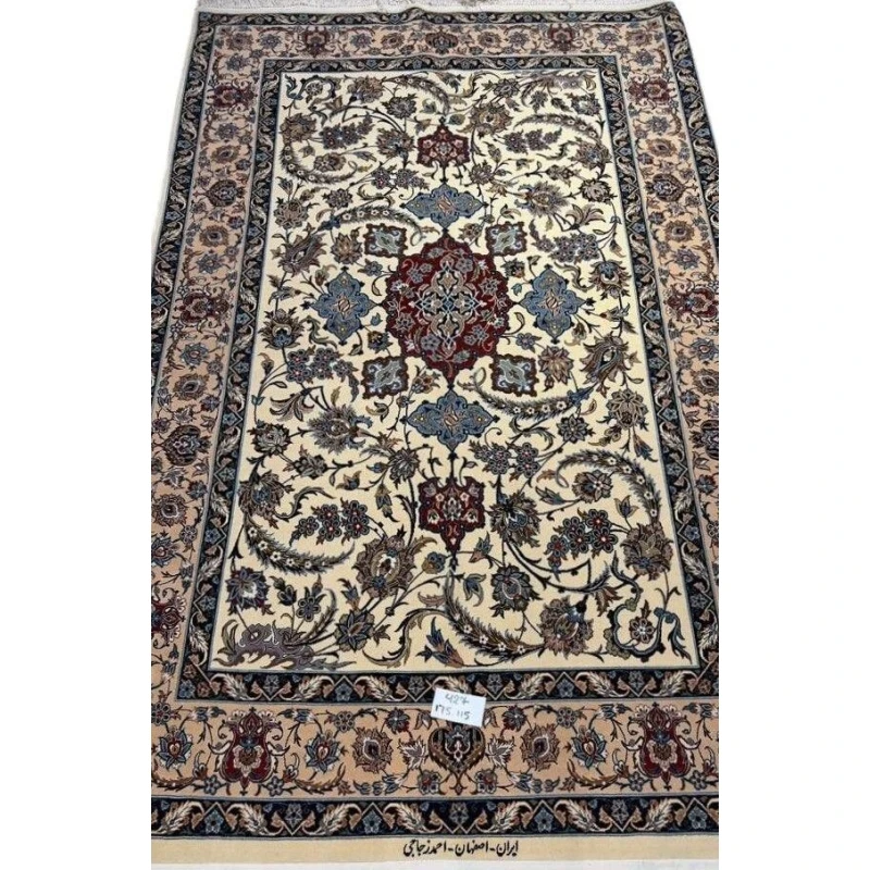 Enhance your home with this finely crafted Persian Isfahan rug, a masterpiece by Master Ahmad Zojaji. Known for his attention to detail and artistic designs, this hand-knotted rug exemplifies traditional Persian craftsmanship. With a size of 175 cm x 115 cm (approximately 5.7 feet x 3.8 feet), it is an ideal choice to add a touch of elegance to any room.
